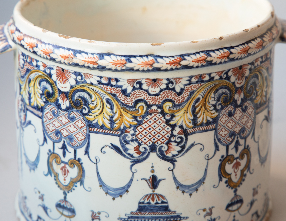 Faïence (tin-enameled earthenware) decorated in polychrome on a fine milky-white background.