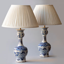 REF: 5109 PAIR OF 18TH CENTURY DUTCH DELFT BLUE AND WHITE WAISTED BOTTLE VASES CONVERTED TO LAMPS